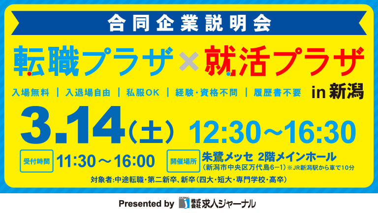 3月14日(土)朱鷺メッセにて「転職プラザ×就活プラザ」を開催します。