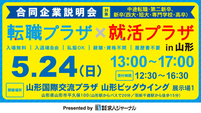 5月24日(日)山形国際交流プラザ 山形ビッグウイングにて「転職プラザ×就活プラザ」を開催します。