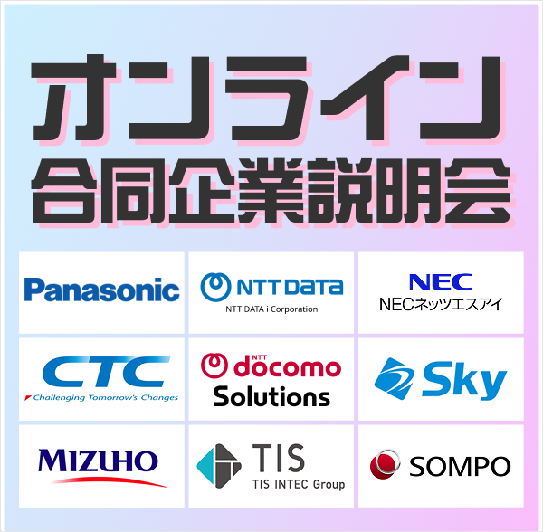パナソニックデジタル / NTTデータアイ / Sky / みずほファイナンシャルグループなど人気有名企業15社以上が参加!